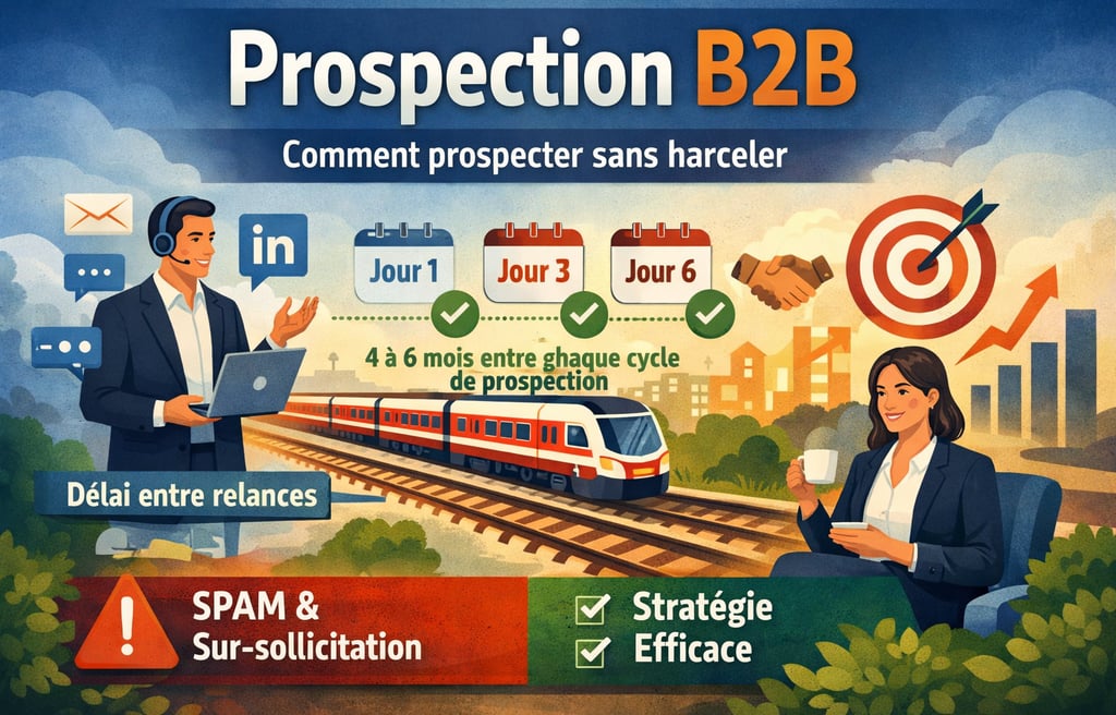 Sinon, vous allez vraiment détruire toute possibilité de collaboration future avec lui. Cependant, ça ne veut pas dire qu'il faut arrêter de le prospecter pour toujours... Il faut simplement laisser suffisamment de temps avant de recontacter. Typiquement, il faut laisser au moins 4 à 6 mois entre chaque cycle de prospection sur un prospect/une entreprise.
