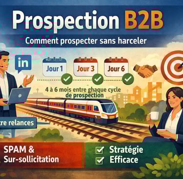 Une bonne prospection B2B ne consiste pas à harceler quelqu'un en permanence, jusqu'à ce qu'il vous dise "oui" pour un RDV. Ca, c'est du spam, et ça ne vous mènera absolument nulle part. L'idée est plutôt de le contacter de manière ciblée, sur des intervalles de temps suffisamment large, pour arriver de temps en temps à l'esprit du prospect, sans trop le déranger.